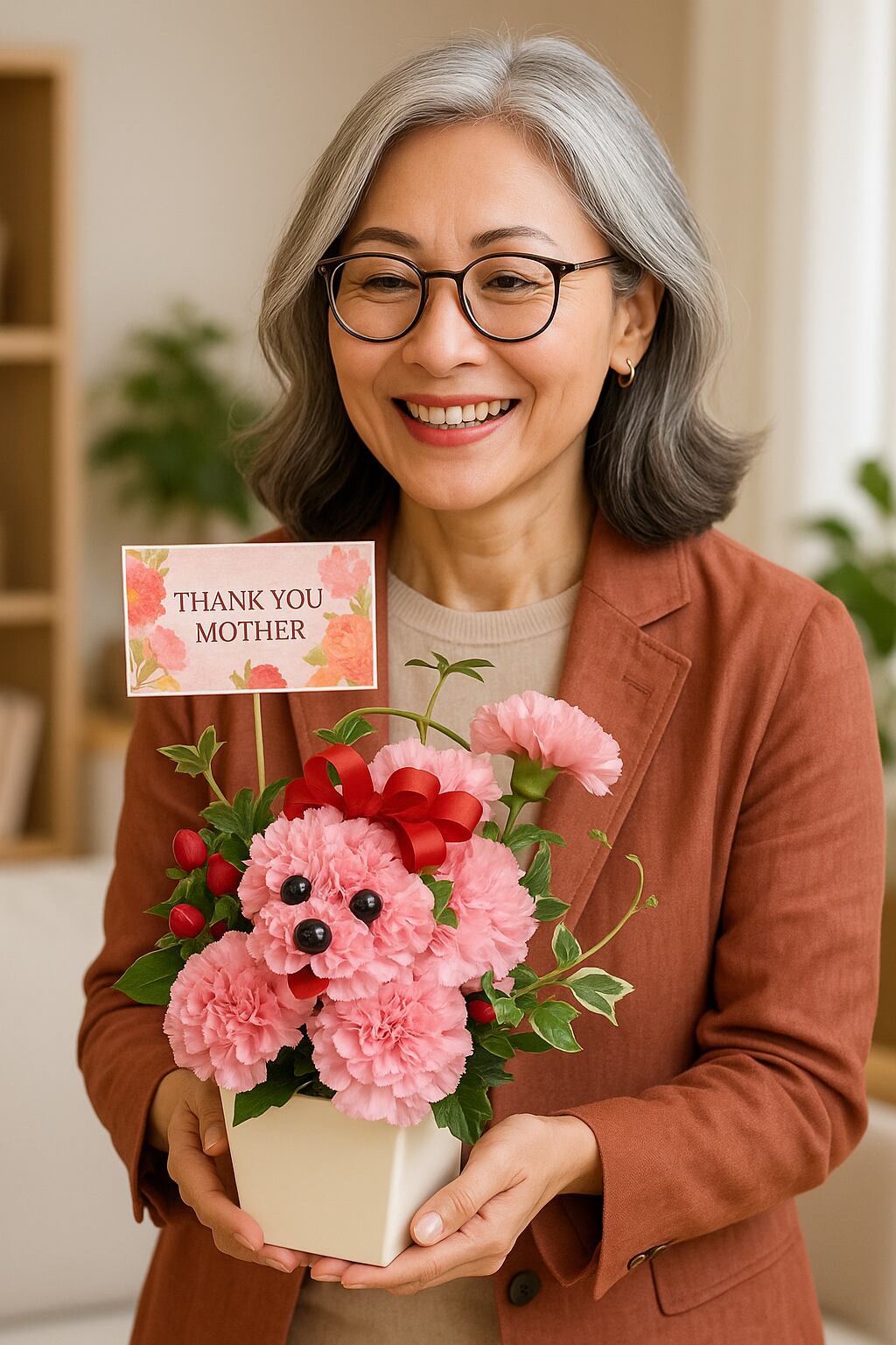 こちらのアレンジメントには、新鮮なピンクのカーネーションの花を使用し、愛くるしいプードル形のデザインに仕上げています。使用する花材はその日の新鮮な花を厳選し、バランスよくアレンジしております。なお、ピックはデザインによって変わることがございますのでご了承ください。